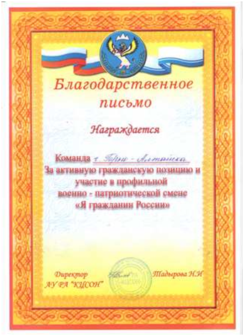 Ежегодно учащиеся разных школ города принимают участие в военно-патриотической смене «Я- гражданин России», которая проходит на базе УТЦ «Семинский». В этом году город Горно-Алтайск представляла команда МОУ «Средней общеобразовательной школы № 8». Ребята принимали активное участие во всех соревнованиях и достойно защищали интересы города.