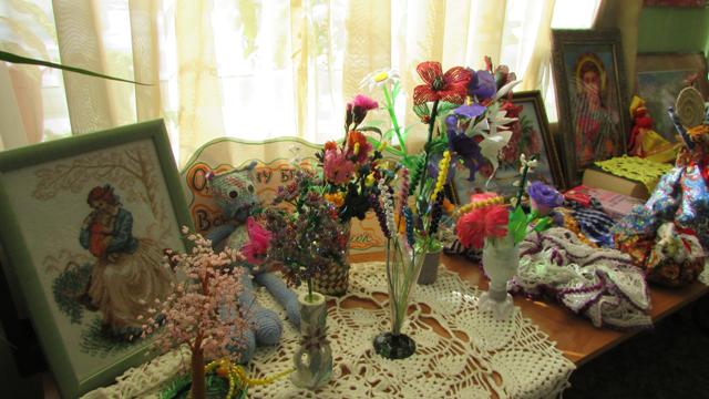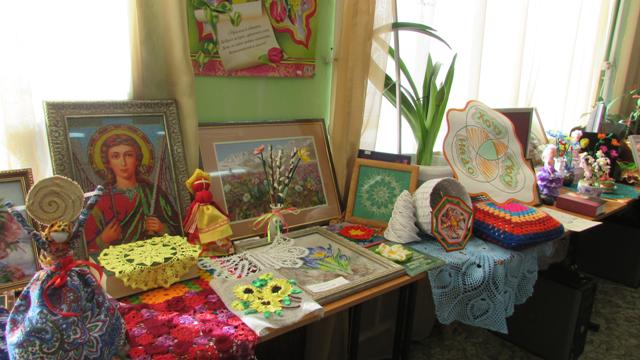 На встречу клуба собралась большая часть коллектива. Каждая мастерица принесла на выставку свои новые, лучшие работы: картины из бисера, букеты из пайеток, мягкие игрушки, салфетки и другие изделия вязанные крючком. Особенно понравились работы мастериц – кукольниц. Татьяна Цацур удивила всех новыми куклами – «мотанками» и  «травницами - зернушками». Необыкновенной красоты новые куклы выставила Светлана Килина. Привлекли внимание  розовые динозавры и  другие мягкие игрушки Зои Ящемской.