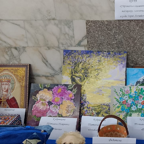 Активное участие в выставке приняли рукодельницы из клуба «Зеркало», клуба «Онлайн» и получатели социальных услуг на дому городского управления социальной поддержки населения. Раскрыть талант, свой внутренний мир мастера могли в номинациях: «изобразительное искусство», «работа с нитью», «работа с бумагой», «работа с деревом». Свои работы представили получатели социальных услуг Любовь Васильевна Казанцева, Татьяна Петровна Кудрявцева, Людмила Николаевна Назаренко, Зинаида Ивановна Олиференко, Галина Михайловна Федотова, Нина Николаевна Чендекова, Татьяна Перфильевна Туманина, Лариса Павловна Мешкинова, Аржана Анатольевна Бельчекова, Владимир Николаевич Вишняков.