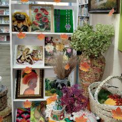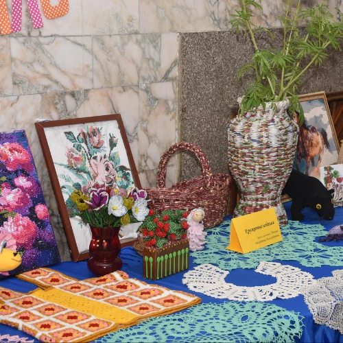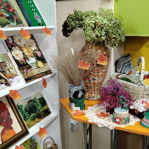 В октябре выставка наших талантливых мастериц, которая никого не оставила равнодушным, была оформлена в Доме культуры на открытии месяца пожилого человека.