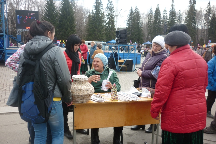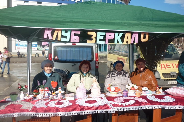 2 апреля на Центральной площади г. Горно-Алтайска состоялась Ярмарка социально-ориентированных некоммерческих организаций Республики Алтай «От сердца к сердцу» в целях консолидации усилий органов власти, общественных объединений и предпринимательского сообщества в решении актуальных социальных проблем. Свою выставку оформили и члены клуба «Зеркало», действующего при Управлении социальной поддержки населения г.Горно-Алтайска для пенсионеров, занимающихся творчеством.