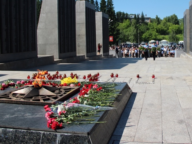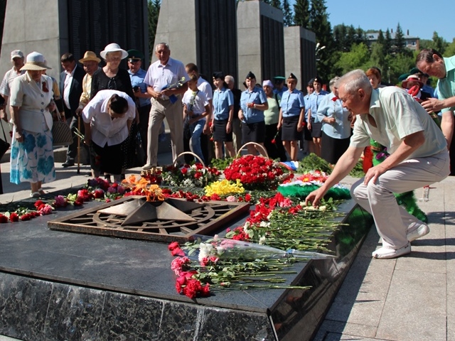 22 июня на мемориальном комплексе Парк Победы в Горно-Алтайске состоялся митинг, посвященный дню памяти и скорби. Около 400 человек, представителей органов государственной власти, ветеранов, курсантов военно-патриотических клубов и жителей Горно-Алтайска, в 75-ую годовщину со дня начала Великой Отечественной войны, почтили память тех, кто ковал нашу победу на фронте и в тылу.