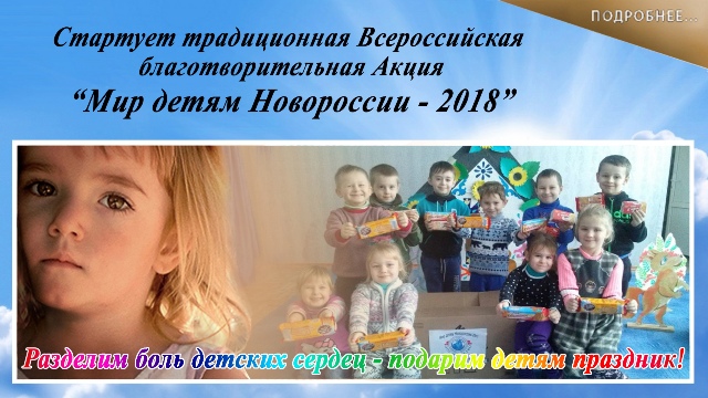 Просим Вас присоединиться к акции «Мир детям Новороссии - 2018»