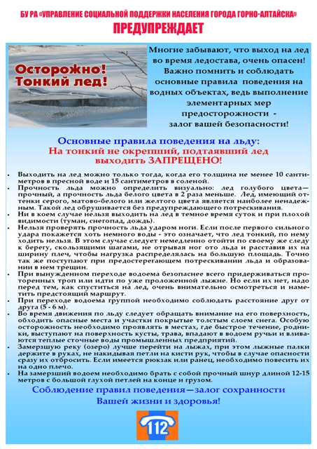 В настоящее время с наступлением морозов на реках начнет образовываться тонкий ледяной покров. В это время выходить на поверхность первого льда крайне опасно. Если человек проваливается на тонком льду, то шансов спастись почти нет: лед проламывается, крошится и силы быстро покидают пострадавшего. Как правило,среди погибших чаще всего оказываются дети. Избежать происшествий можно, если соблюдать правила безопасности.