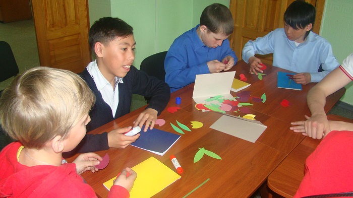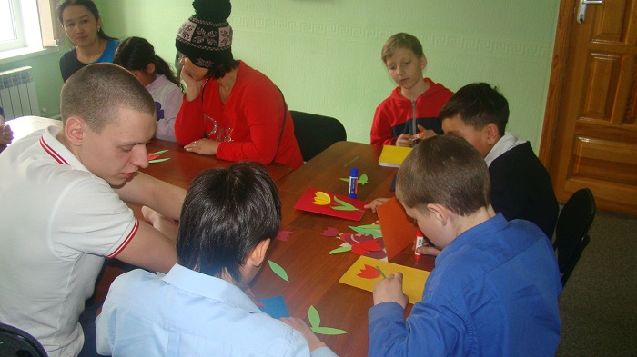 В преддверии праздника кипела работа в творческих мастерских для детей и их родителей. Ребята  активно  участвовали  в  изготовлении  открыток к 8 Марта, готовились порадовать собственными подарками своих мам и бабушек.