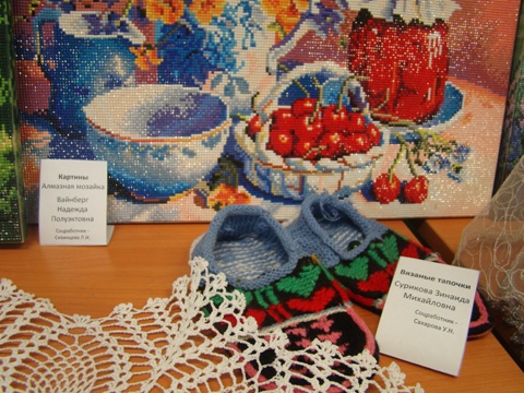 Участники инновационного проекта «Домашняя академия» организовали выставку прикладного творчества, где были представлены работы пожилых надомников, выполненные в разных техниках: вязание крючком, на вилке, алмазная мозаика, рисование по номерам, шитье. Каждый из них получил памятный  приз.