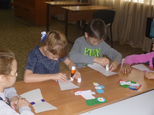 На это творческое мероприятие были приглашены дети из замещающих семей. Каждый ребенок получил заранее приготовленный мини-набор из картона и цветной бумаги. Ребята с большим удовольствием взялись за работу. Немного терпения - и поздравительная открытка готова.
