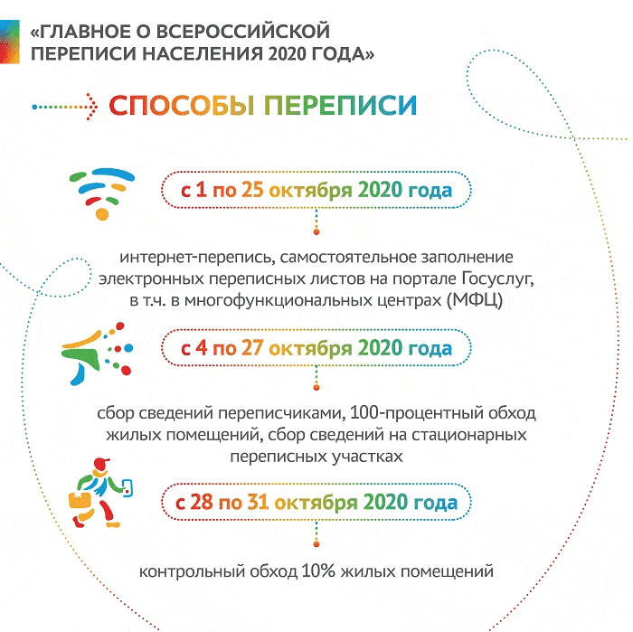 В 2020 году интернет-перепись пройдет с 1 по 25 октября. Возможность пройти интернет-перепись будет предоставлена всему населению.