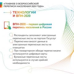 Основным нововведением Всероссийской переписи населения 2020 года является возможность для населения заполнить переписные листы на себя и членов своей семьи самостоятельно в сети интернет на Едином портале государственных и муниципальных услуг (ЕПГУ).
