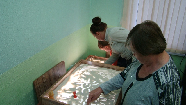 Семинар проходил в два этапа. В первой его части был  представлен доклад-презентация «Пескотерапия как эффективный метод развития речи у детей с ограниченными возможностями здоровья». Родителей познакомили с основными способами и приемами рисования на песке, с историей возникновения песочной анимации, рассказали, чем полезны игры с песком.